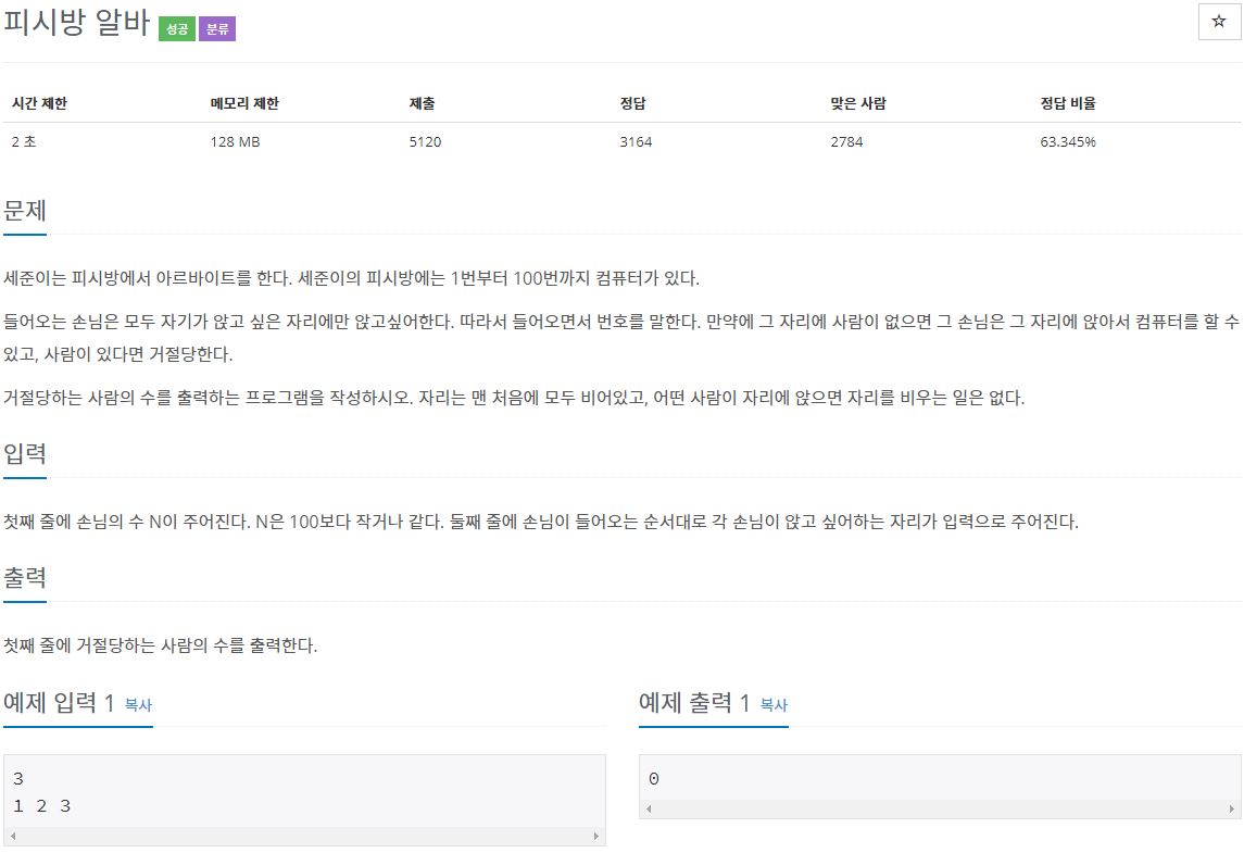 - 이중 반복문을 사용해 들어온 값이 이미 배열안에 있나 확인하는 방법으로도 풀이가 가능하다