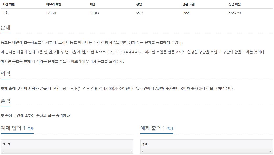 - 수열을 구한 후 a~b사이의 합을 출력하면된다