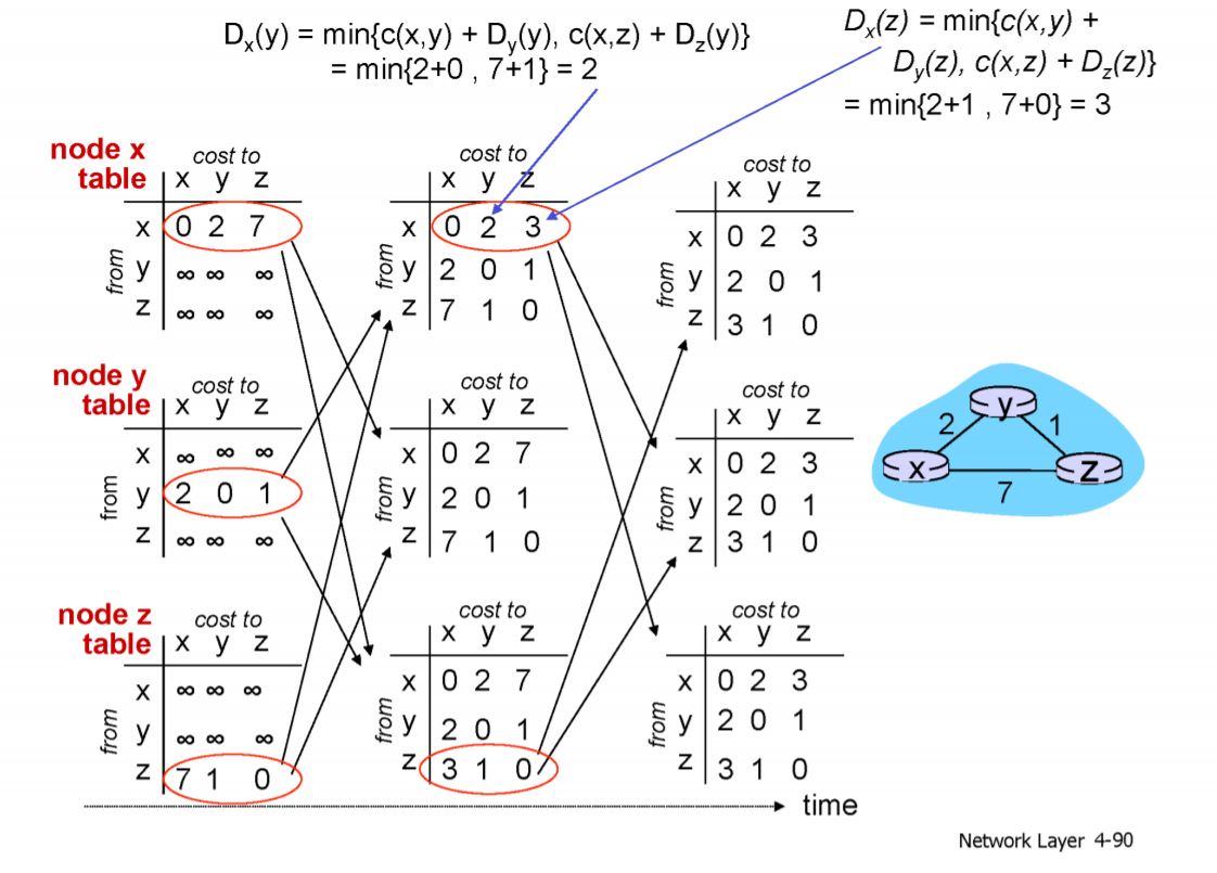 2. distance vector algorithm: 이웃된 라우터 정보만 알고 알고리즘을 짬