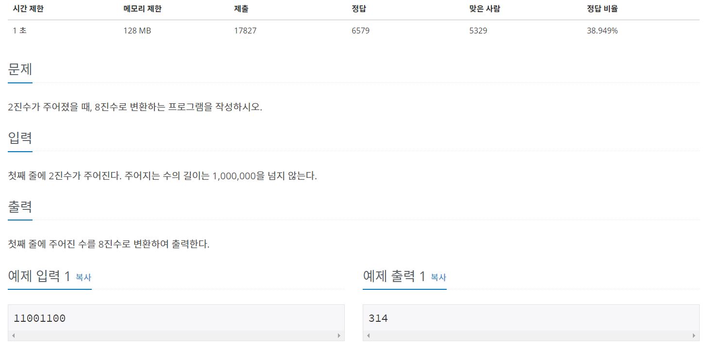 - 2진수를 바로 8진수로 바꾸는 방법을 그대로 코드로 작성하였다