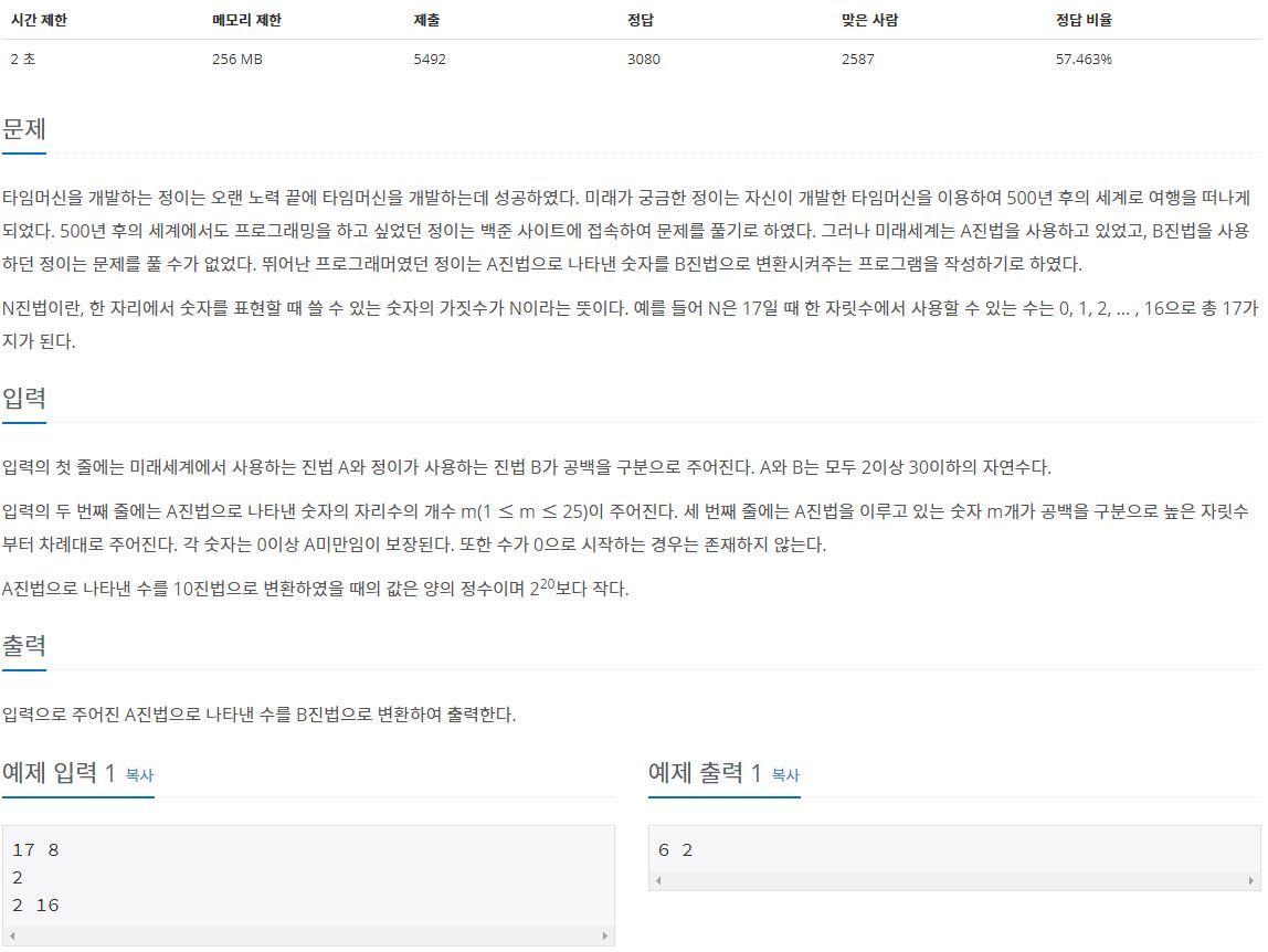 - A진법을 10진법으로 바꾼 후 다시 B진법으로 바꾸면 된다