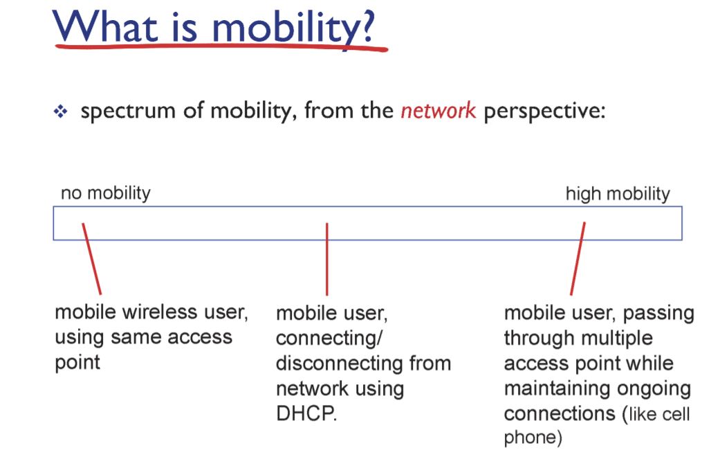 - home network: host를 일단 한 곳에 홈 네트워크(permanent)를 만들고, 이동할때마다 permanent에게 위치를 알려주면 연결할때 해당 위치를 찾아가서 연결을시켜줌