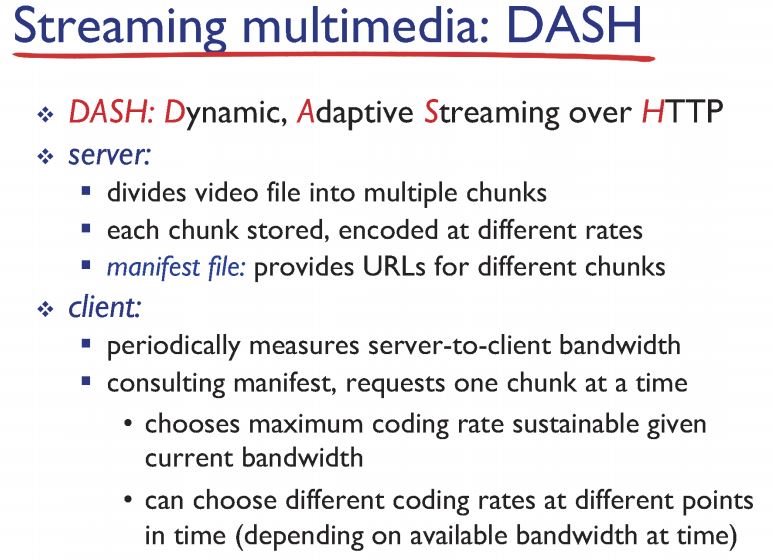 1. streaming, stored: 서버에 저장되어있는 오디오, 비디오를 틀어줌(youtube, Netflix)