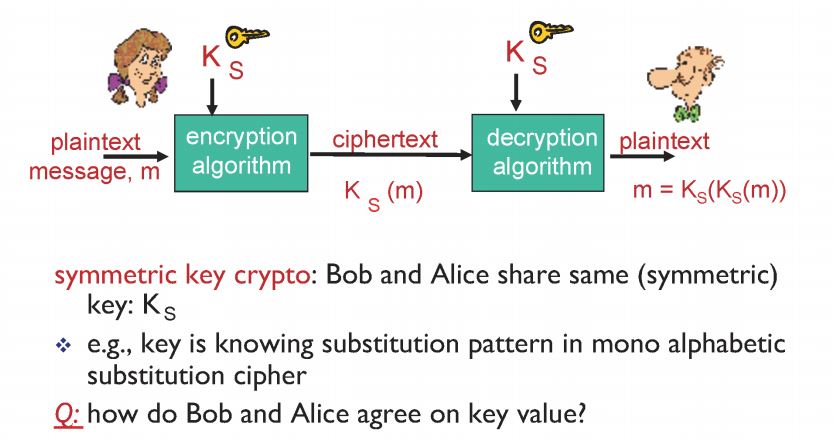 - 앨리스와 밥이 같은 key를 갖고 있어 앨리스가 보낼때 해당 key로 암호화 하고 밥이 받을때 해당 key로 해독함
