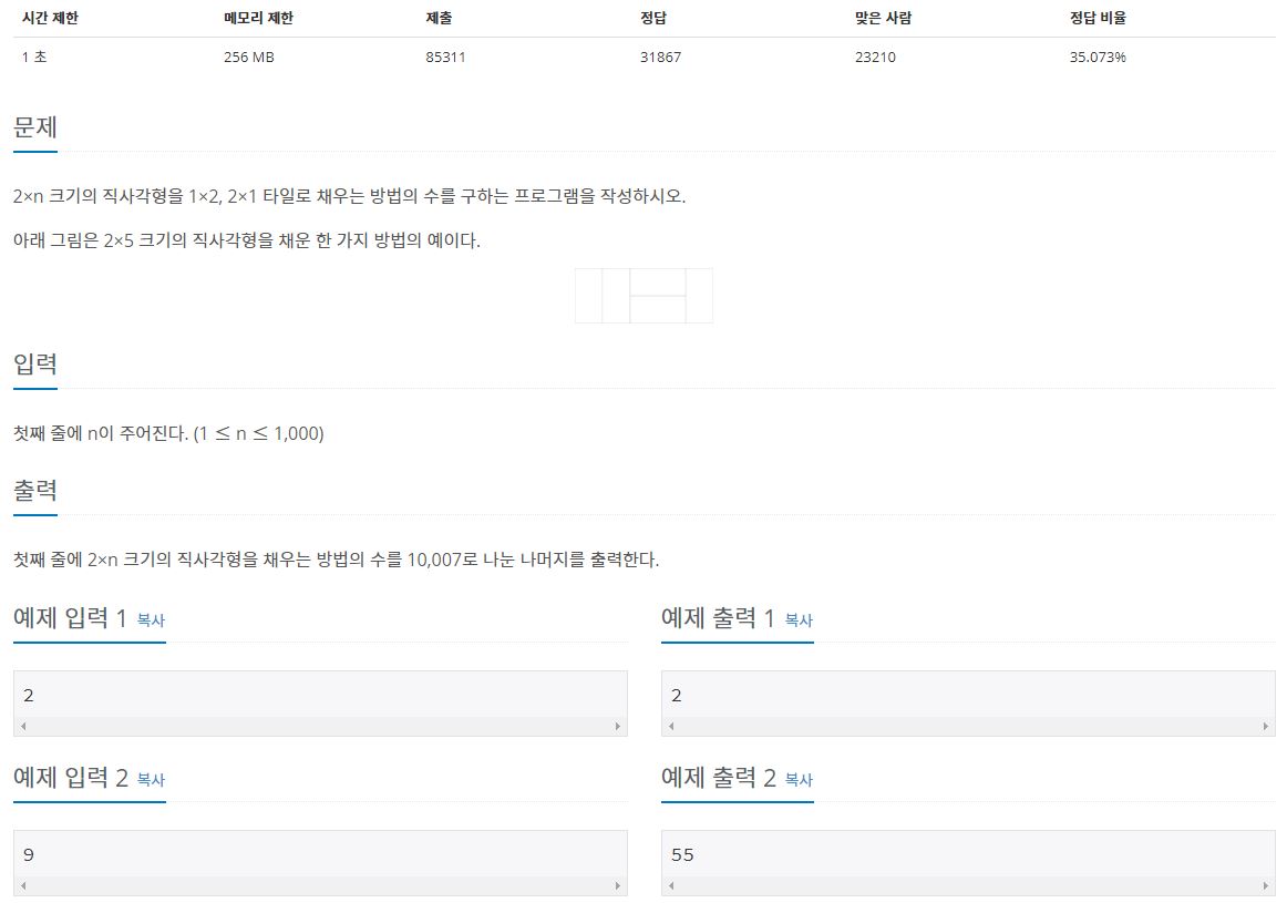 dp[i] %= 10007;//int에 담을 수 있게 10007로 나머지 연산 수행하는듯