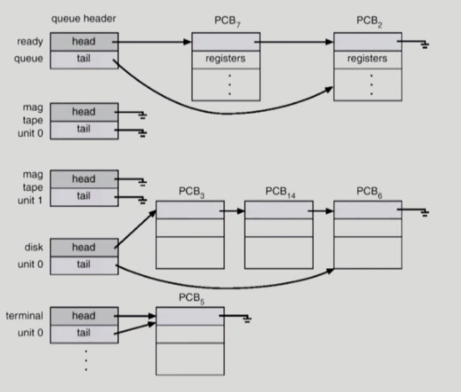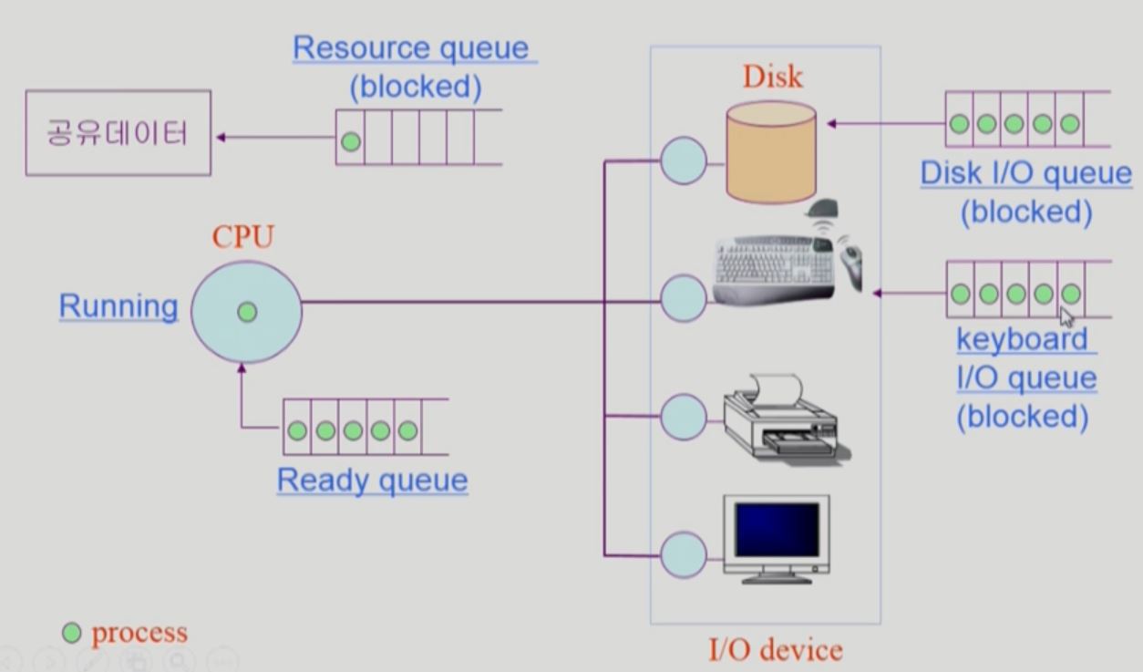 - queue에는 사실 프로세스가 줄서있는 것이 아닌 운영체제가 프로세스를 관리하는 PCB라는 자료구조가 줄서있는 것임