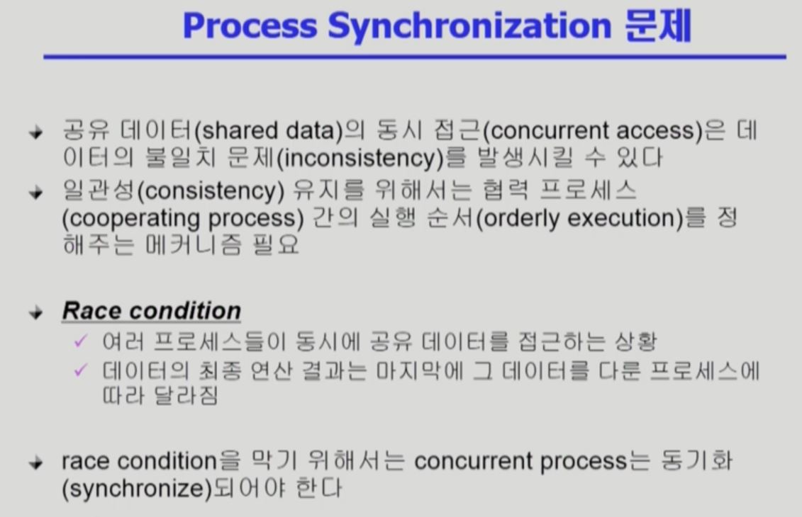 - 여러 프로세스가 주소공간을 공유하는 경우도 Race Condition이 발생할 수 있음