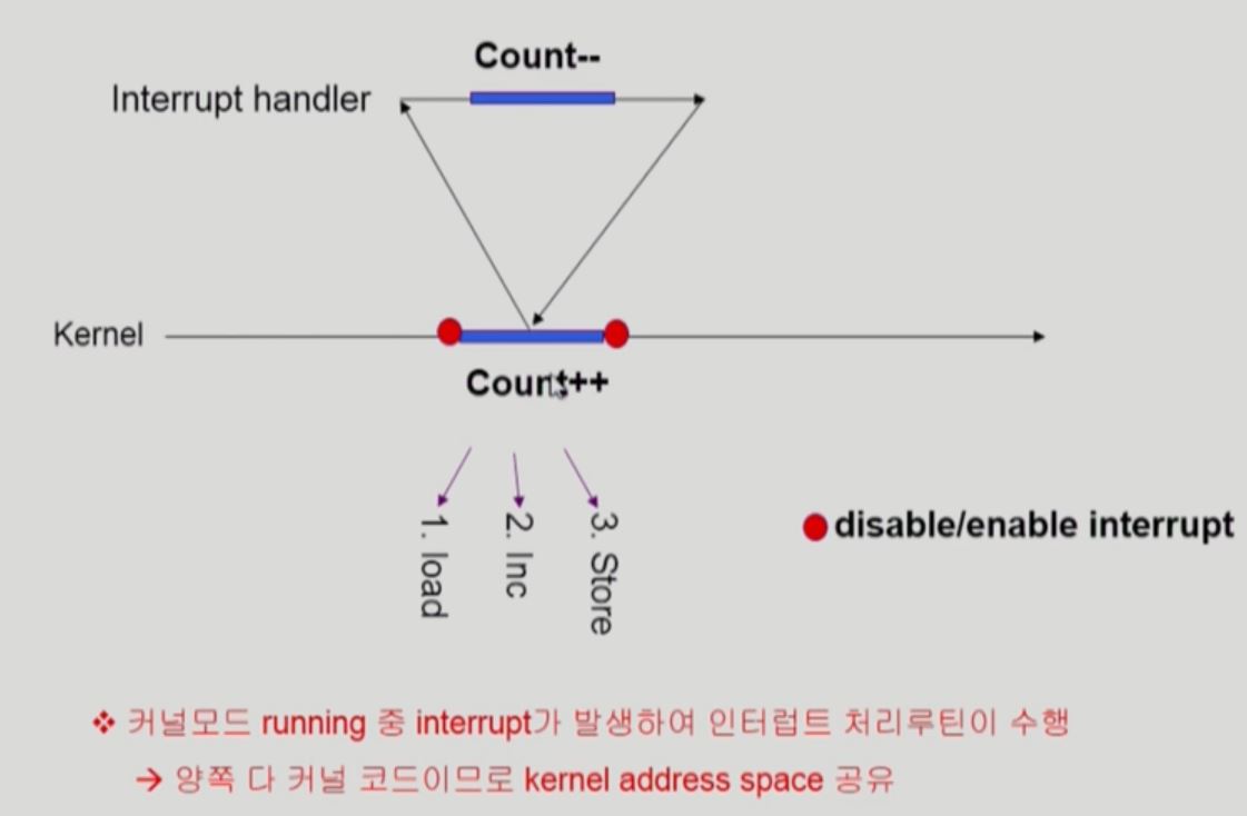 - 커널에서 count++ 작업을 하던 도중, 1. data load부분까지만 했는데 인터럽트가 들어온 경우 해당 인터럽트를 먼저 수행한다
